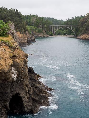 Here and there you find place names with “Russian” in them: Russian Gulch, Fort Ross, Ross Bay, and Russian River. Some clearly have historical links to Russian settlers—for instance, Fort Ross is quite literally a “Russian fort”. The origins of others are lost in the mists of time. As for why this particular gulch is “Russian”, the internet has no definitive answer. One story suggests a settler may have fled Fort Ross and set up home some 80 km further north—but that’s far from certain.