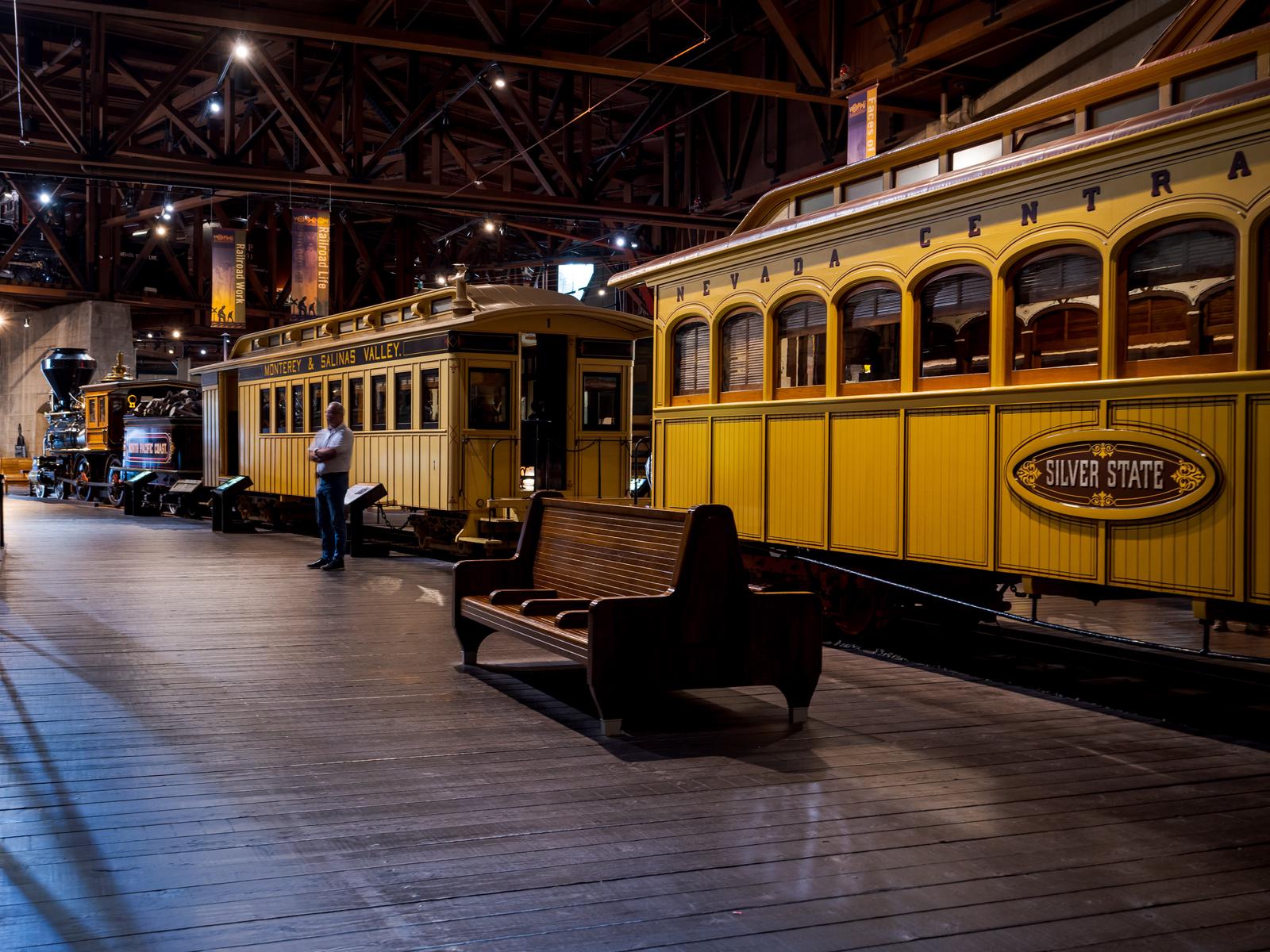 Скажу просто - музей отличный! Он рассказывает историю развития железных дорог в Калифорнии в 19-м и 20-м веках, от бурного роста во время “Золотой лихорадки” до постепенного заката по мере роста популярности авиа-перевозок. На нижнем этаже стоят локомотивы и вагоны в декорациях небольших железнодорожных станций рубежа веков. В некоторые вагоны можно зайти и поизучать внутреннее устройство. Смотрители музея (или волонтёры, сложно сказать) - в основном пожилые мужчины. Из разговоров с ними становится понятно, что они фанаты железнодорожного дела, и готовы часами про него рассказывать посетителям. Мы узнали: