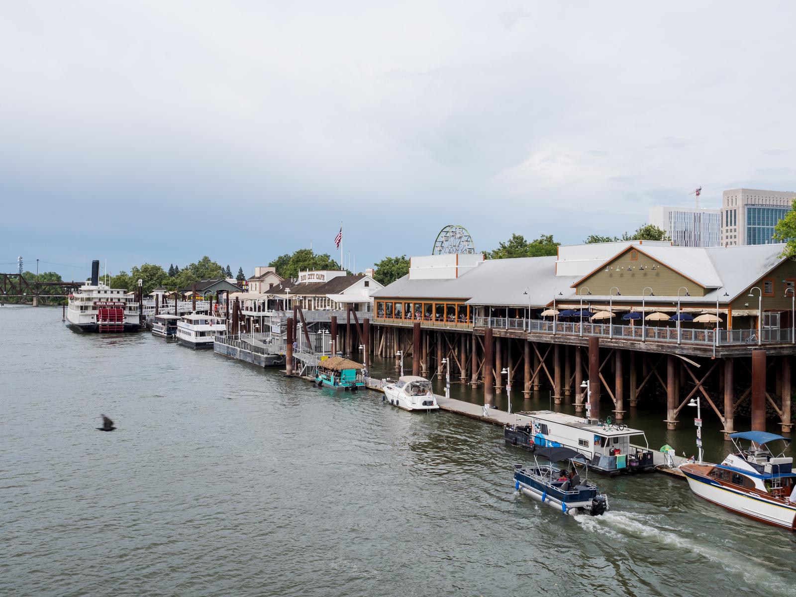 Представьте, что вы на набережной Анапы конца девяностых - начала нулевых годов. Теперь мысленно дорисуйте вокруг себя антураж городка из фильмов-вестернов. Получилось? Поздравляю, вы в Старом Сакраменто! Вдоль берега реки на территории 400х100м власти города постарались сохранить архитектуру, планировку и атмосферу американского города конца 19-го века. С архитектурой и планировкой получилось, а вот с атмосферой - нет. Несмотря на то, что территория района со всех сторон окружена парковками, люди все равно пытаются проехать по нему на автомобилях. Вдоль улиц - парковки, на улицах - постоянная пробка. Видимо, американская (калифорнийская?) урбанистика еще не дошла до того, чтобы ограничивать въезд автомобилей в некоторые районы города.